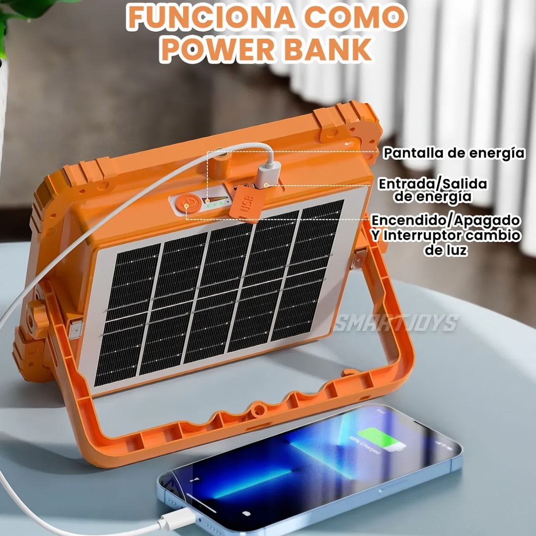 Este reflector solar portátil no solo es una fuente de luz potente y versátil, sino que también se convierte en un aliado indispensable al sumar la función de power bank y herramientas básicas. Ideal para campamentos, pesca nocturna, trabajos en el hogar o emergencias, te brinda tranquilidad y funcionalidad en un solo producto.
